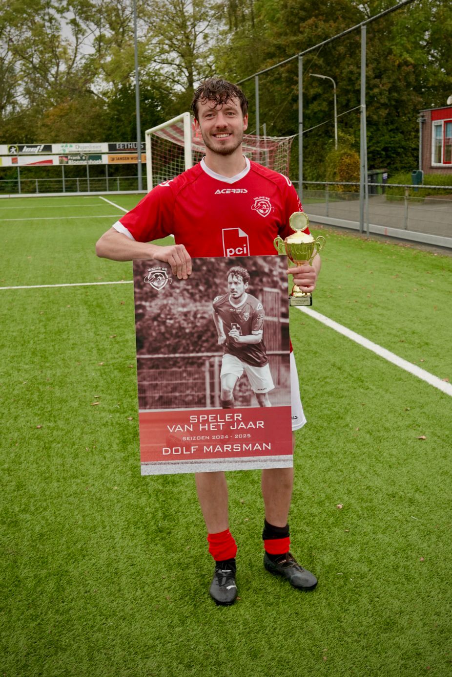 Dolf Marsman is gekozen als speler van het seizoen 2024 2025 door een jury die gedurende het hele seizoen een top drie per wedstrijd bepaalt. De speler die het vaakst (hoog) in de top 3 staat, wordt de winnaar. Dolf had een uitstekend seizoen, brak echt door en is in korte tijd een dragende speler voor het team geworden. Dolf, gefeliciteerd namens het Voetbal bestuur.