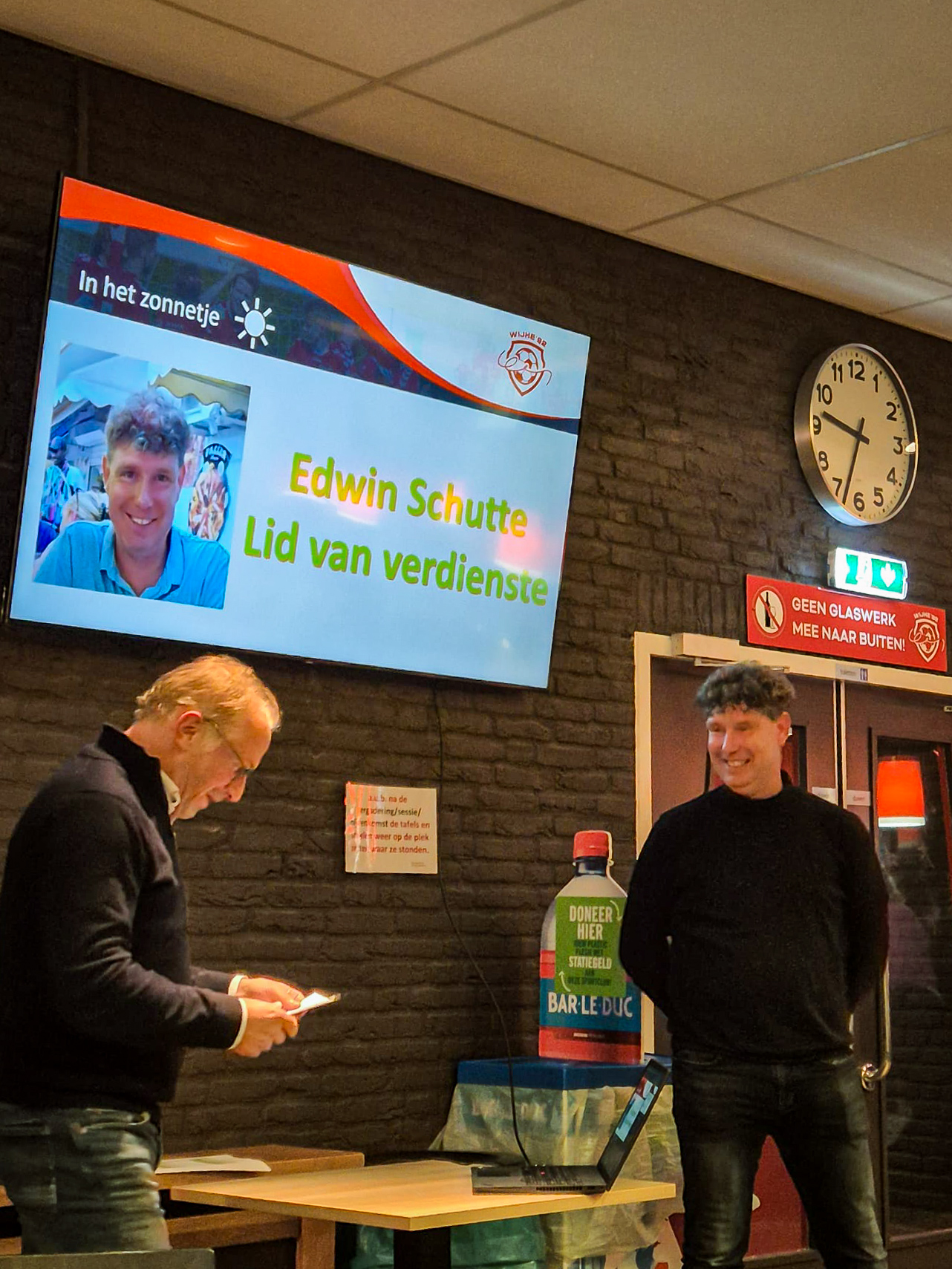 Edwin Schutte wordt voor zijn jarenlange inzet, loyaliteit, betrokkenheid en kwalitatief goede inbreng als jeugdvoetbaltrainer benoemd als lid van verdienste van Wijhe´92.
