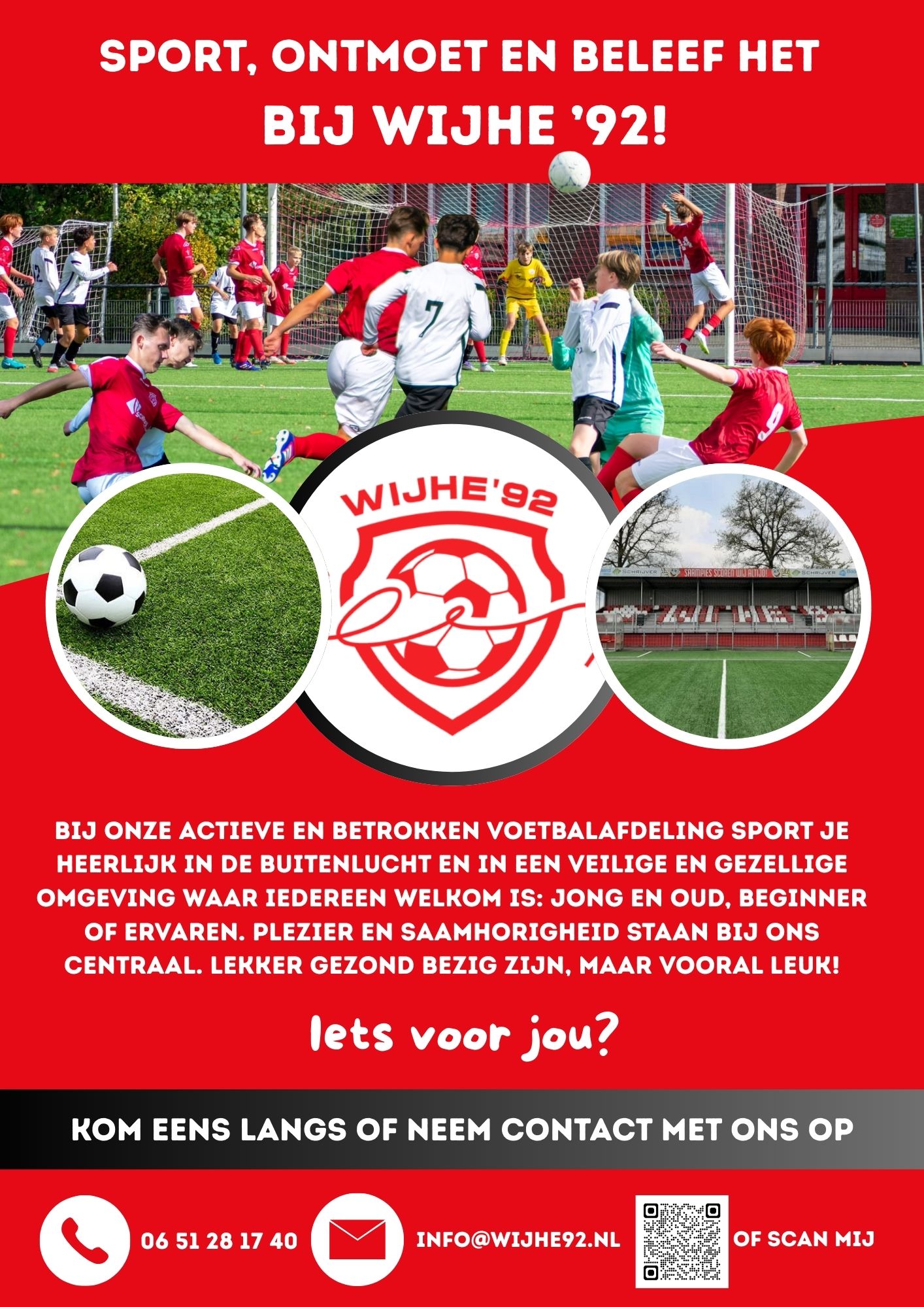 Binnen de afdeling voetbal bij Wijhe ’92 zijn er o.a. de mogelijkheden: